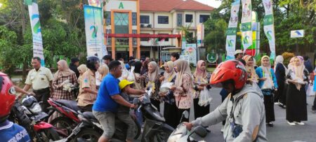 Di depan Kampus UMAHA, Ratusan mahasiswa tampak sibuk membagi-bagikan ribuan paket sayuran segar. Totalnya, sebanyak 1.000an paket berisi kentang, kubis, kacang panjang, wortel, hingga bahan sayur sop dibagi-bagikan oleh mahasiswa kepada masyarakat sekitar.