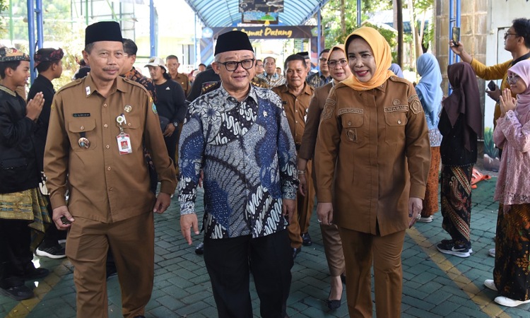 Menteri Pendidikan Dasar dan Menengah RI Prof. Dr. Abdul Mu’ti didampingi Wakil Bupati Sidoarjo, Hj. Mimik Idayana dan Kadis Pendidikan Sidoarjo Dr. Ng. Tirto Adi, MP, M.Pd. (Sidoarjosatu.com)