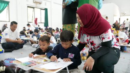 SIDOARJOSATU.COM – Tangan-tangan mungil anak-anak TK di Sidoarjo tampak riang mewarnai, menggunting, dan menempel kertas warna-warni di Museum Mpu Tantular, Minggu (31/8/2025).